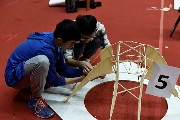 5月23日下午,由bet3365info教务处、实践教学中心、校团委、人居学院、航天航空学院、崇实书院、文治书院等联合举办的bet3365info第一届“腾飞杯”大学生结构设计竞赛在思源大学生活动中心举行。本次竞赛共有来自8个学院12个专业的20支队伍报名参赛,经过赛前培训、模型制作、提交计算书等环节,最终有15支参赛队伍进入最后的角逐。